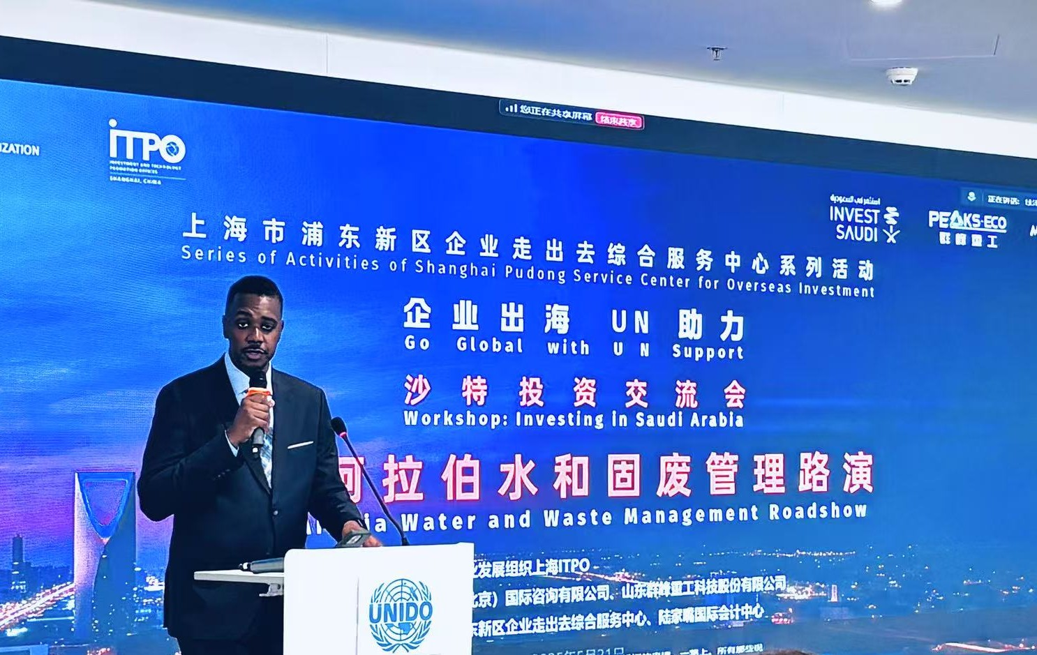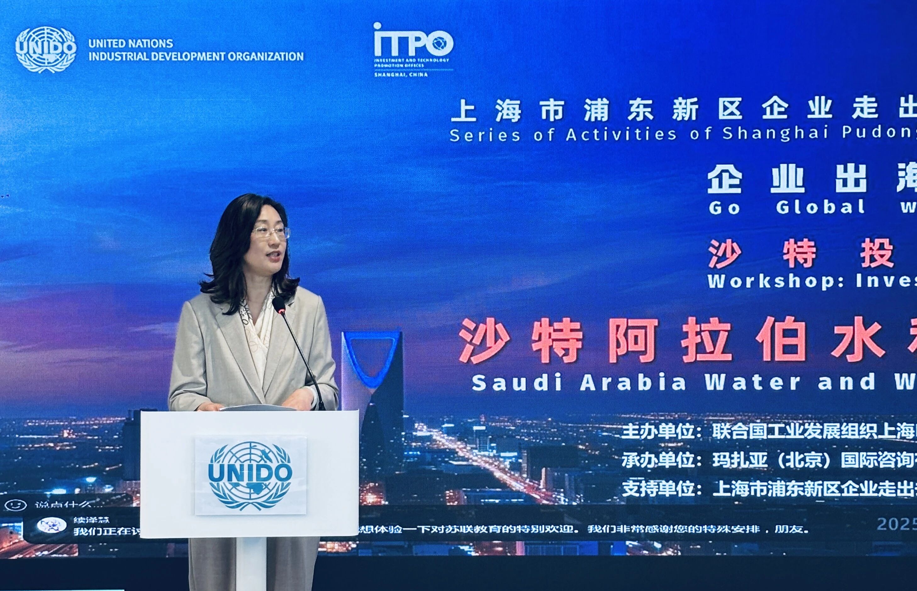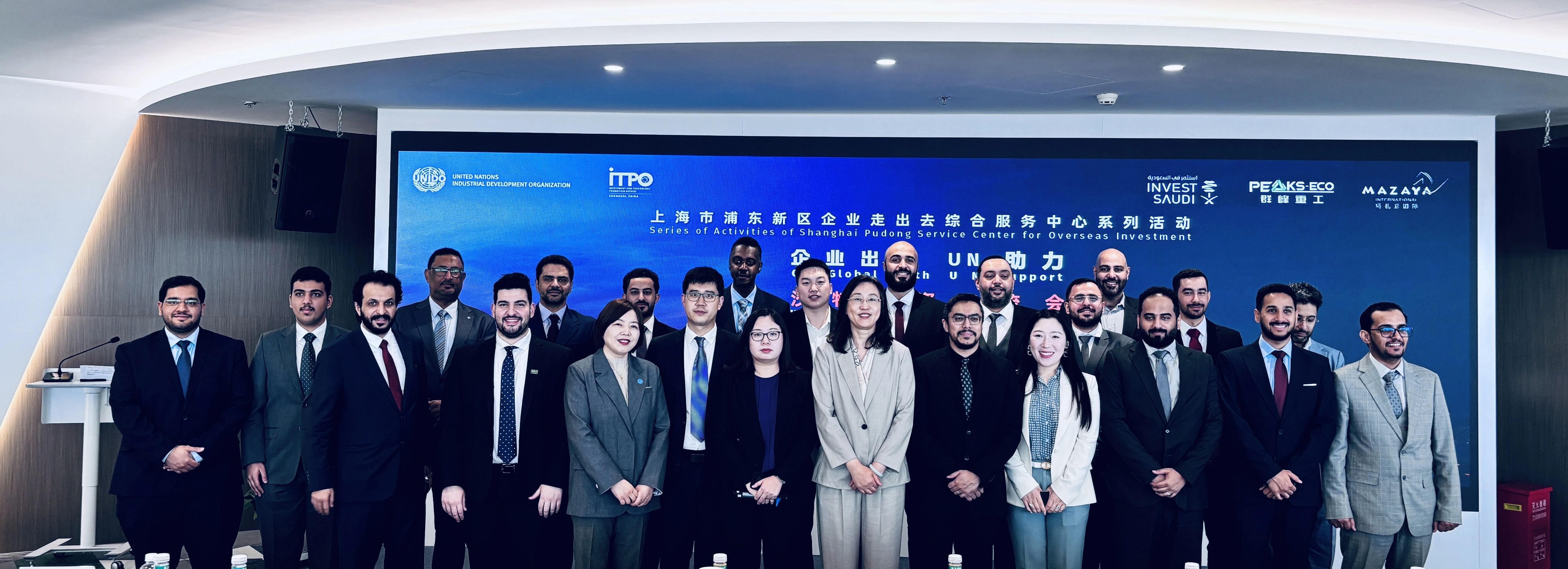 On May 21, 2025, the "Go Global with UN support | Workshop: Investing in Saudi Arabia," hosted by the United Nations Industrial Development Organization Investment and Technology Promotion Office Shanghai, and co-organized by Mazaya (Beijing) International Consulting Co., Ltd. and Shandong Qunfeng Heavy Industry Technology Co., Ltd, was successfully held at the Shanghai Tower. Over 30 Saudi government and corporate representatives from Saudi ministries and large enterprises, including Saudi Ministry of Environment, Water, and Agriculture (MEWA), Saudi Water Authority (SWA),