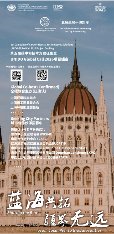 Standing at the new starting point of the 15th Five-Year Plan period, in response to the national strategy of expanding high-standard opening-up, creating a new landscape of win-win cooperation, and promoting high-quality industrial development, and to support China's dual-carbon goals, UNIDO ITPO Shanghai will collaborate with major partners to meticulously prepare for the global event: "The 5th Campaign of Carbon-Neutral Technology and Solutions and UNIDO Global Call 2026 Project Pipeline." Building on the successful experience of previous editions focusing on three tracks-Energy Carbon Neutrality, Industrial and Manufacturing Carbon Neutrality, and Integrated Carbon Neutrality Governance-this year's campaign will introduce two distinctive features. First, it will have a global reach, characterized by a "Five-Edition Solution Showcasing, Ten-City Global Matchmaking" approach.